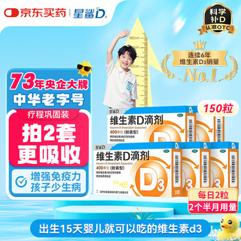 星鲨维生素d3滴剂(胶囊型)30粒*5盒【150粒】d3婴儿婴幼儿儿童成人维生素D促钙吸收补钙长高 星鲨京东自营非维生素ad