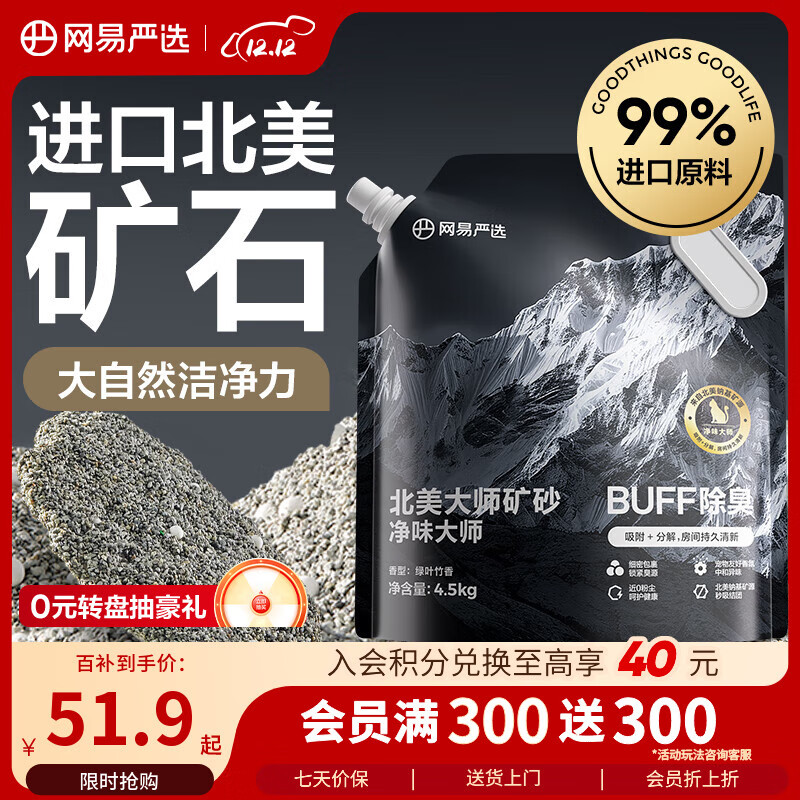 网易严选【京东定制】北美进口矿砂净味抑菌猫砂除臭矿砂 净味大师4.5kg