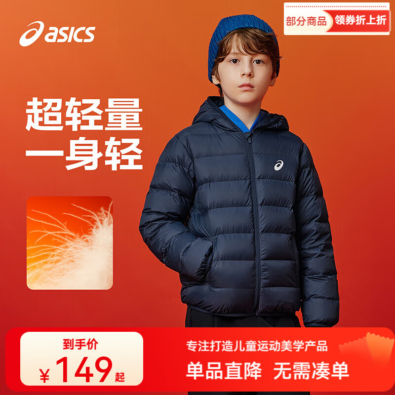 asics亚瑟士童装25年冬季儿童柔软舒适三防轻薄保暖羽绒服【高充绒量】 藏青色 清洁度1000-鸭绒 170 充绒量109.2g