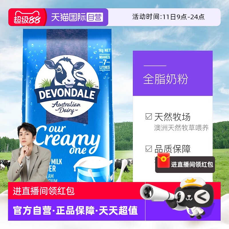 【自营】澳洲进口德运全脂高钙成人牛奶粉中老年青少年全家奶粉