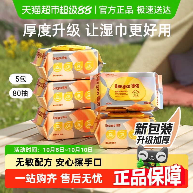 德佑婴儿湿巾加厚宝宝手口专用纸巾非棉柔巾家用大包湿纸巾