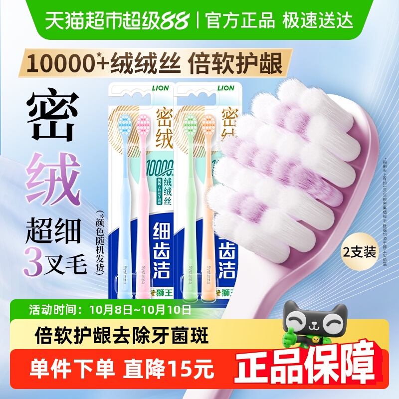 LION狮王细齿洁密绒万毛牙刷旋风成人软毛家庭装护龈口腔清洁2支