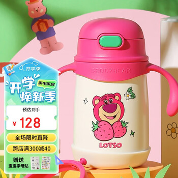 杯具熊(BEDDYBEAR)儿童保温杯带手柄吸管儿童水杯316不锈钢宝宝学饮杯子400ml草莓熊