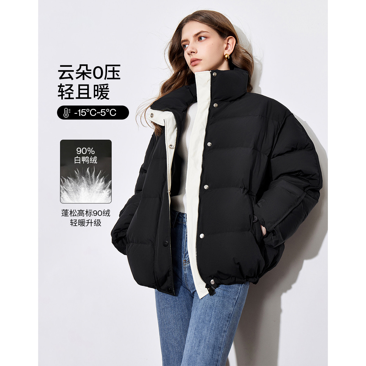 【90铂金绒】冬款多巴胺泡芙羽绒服女蓬松云朵面包服外套