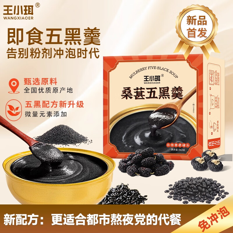 王小珥有机本草银耳礼盒80g*2罐银耳羹冲泡即食送焖烧杯代餐中秋节礼盒 【即食桑葚五黑羹】165g*6碗