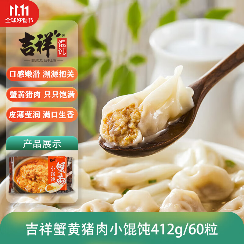 吉祥馄饨蟹黄猪肉小馄饨412g 60粒生鲜水饺云吞饺子混沌早餐半成品