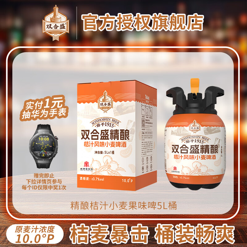 双合盛【内部团购】小麦啤酒北京百年老字号聚会必备 桔汁果啤5L*1桶