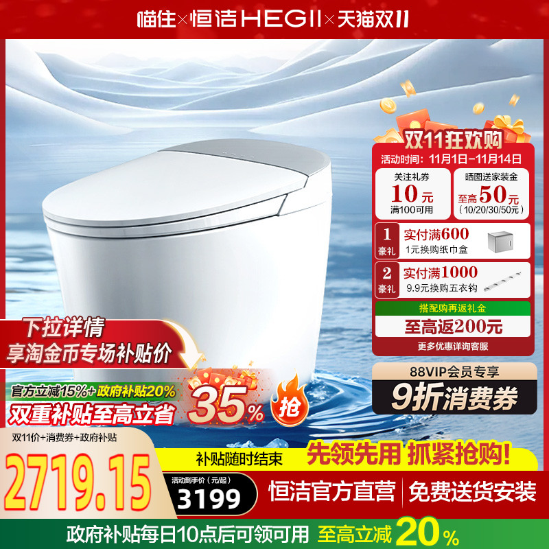 HEGII恒洁全自动一体坐便器家用零压智能马桶舒沐洗H3脚感冲水