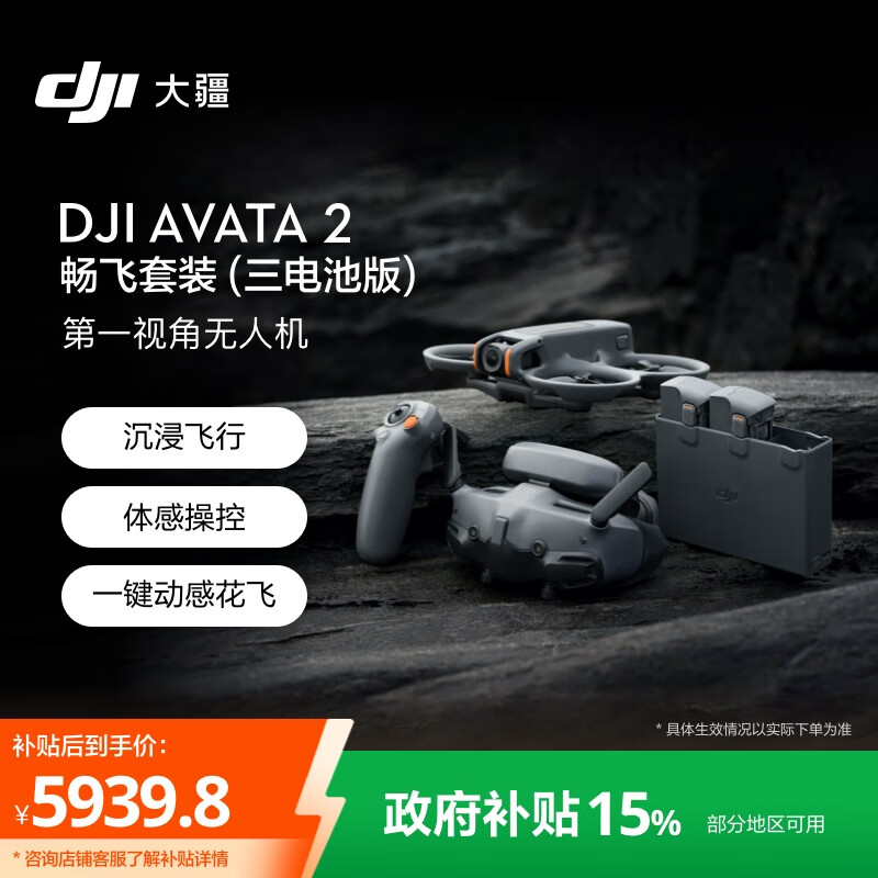 大疆 DJI Avata 2 畅飞套装(三电池版) 第一视角航拍无人机 飞行眼镜体感操控沉浸式