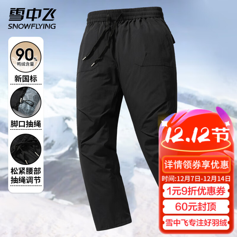 雪中飞御寒羽绒裤男冬季松紧腰显瘦宽松直筒裤保暖潮流百搭鸭绒内胆长裤 黑色 M 170