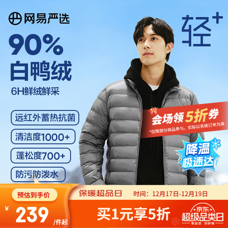 网易严选【轻+7.0pro】90白鸭绒轻薄羽绒服排骨羽绒服云感保暖抗菌 立领*幻影灰 M