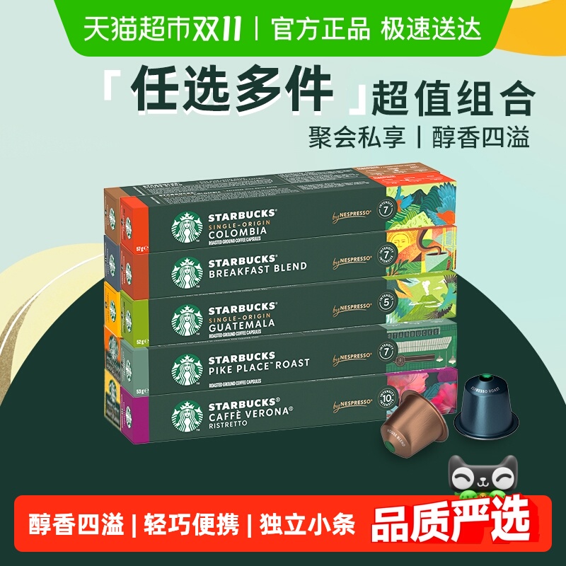 详情领券任选8件星巴克胶囊咖啡NESPRESSO浓缩美式咖啡多口味