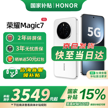 荣耀(HONOR)Magic7 新品5G手机 【国家补贴】 荣耀AI鹰眼相机 骁龙8至尊版 magic6升级版 雪域白 12GB+256GB【2年碎屏险+3年质保】