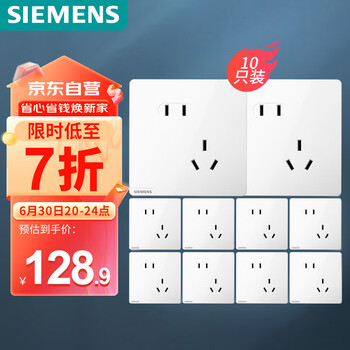 西门子(SIEMENS)插座面板套装 斜五孔10只量贩装 86型暗装电源插座 皓彩雅白
