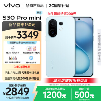 vivo S30 Pro mini 12GB+256GB 薄荷青 国家补贴 多彩小直屏 超级潜望长焦 6500mAh 学生 AI手机