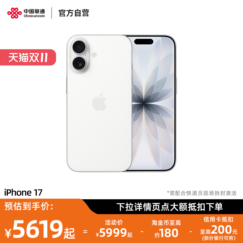【中国联通自营】Apple/苹果 iPhone 17手机官方旗舰店官网授权分期免息需现场拆封激活