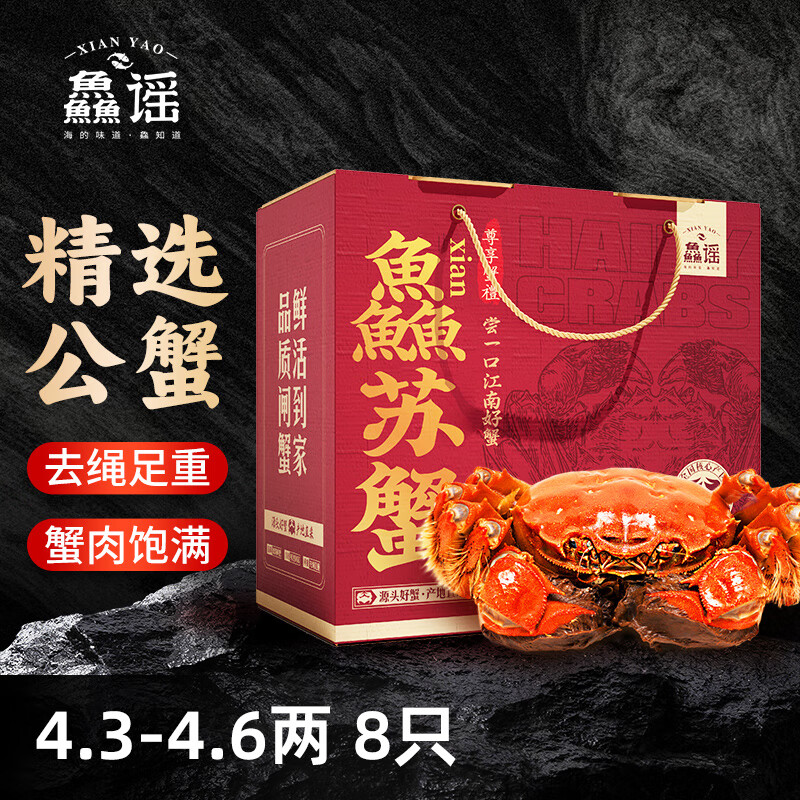 【活蟹】鱻谣 大闸蟹鲜活螃蟹 全公4.3-4.6两 8只装 生鲜活蟹礼盒现货