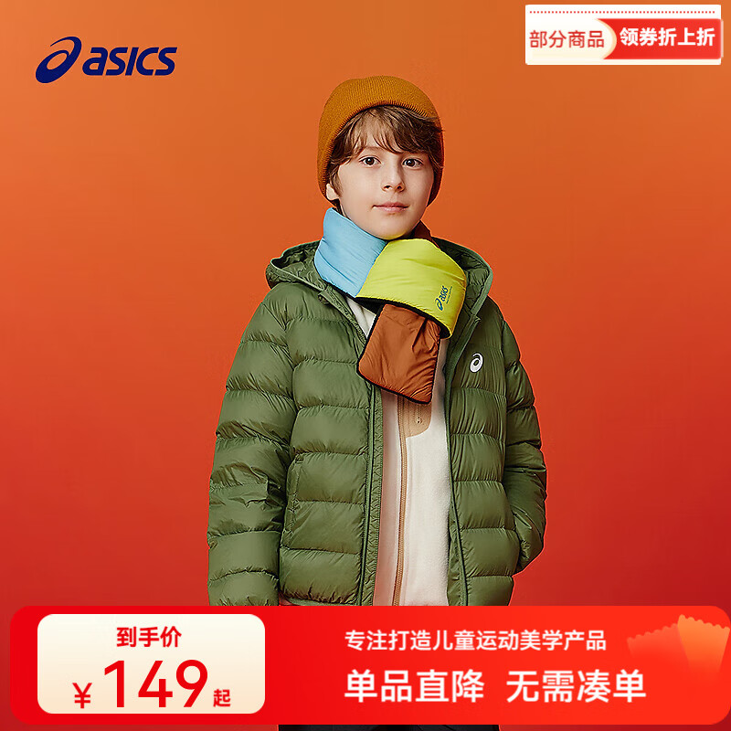 asics亚瑟士童装25年冬季儿童柔软舒适三防轻薄保暖羽绒服【高充绒量】 军绿色 清洁度1000-鸭绒 170 充绒量109.2g