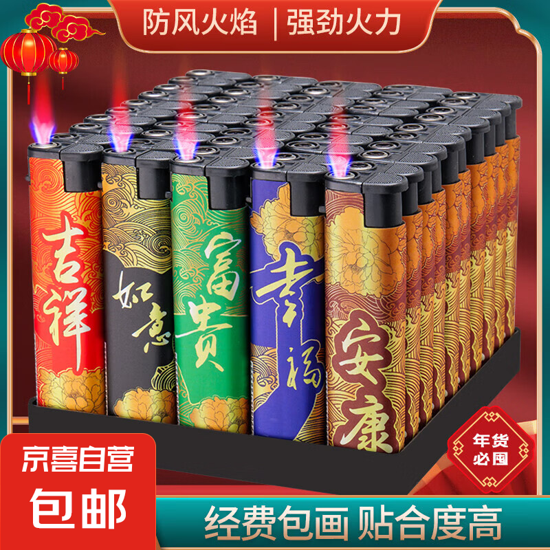 【吉祥如意】防风一次性打火机 过年加厚防爆耐用批发便利店超市 吉祥如意(防风) 15支