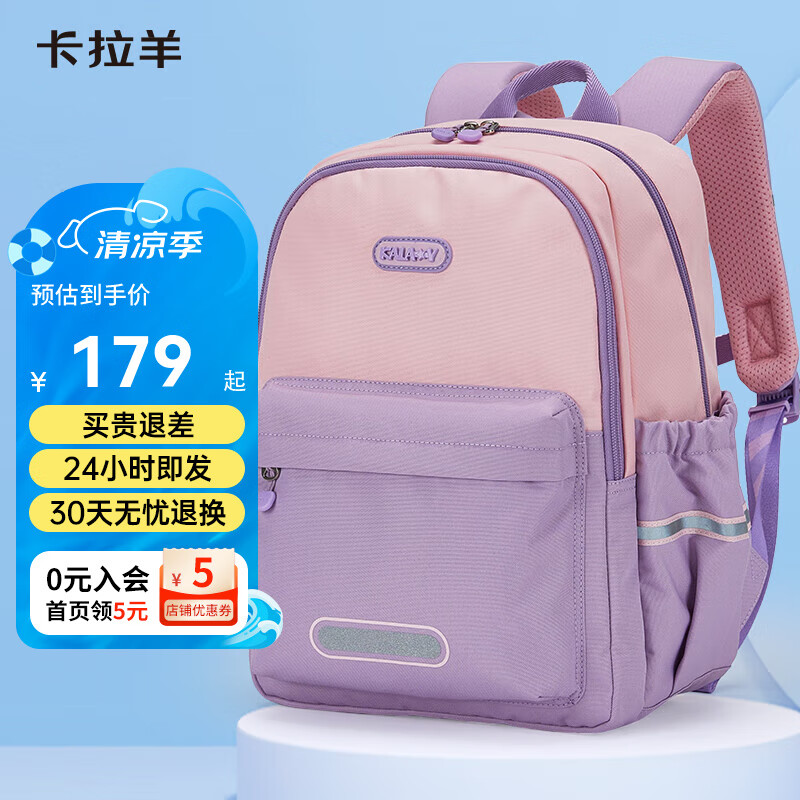 卡拉羊小学生书包3-6年级大容量高颜值游学双肩包CX2842+CX5514 【18L】薰衣草紫