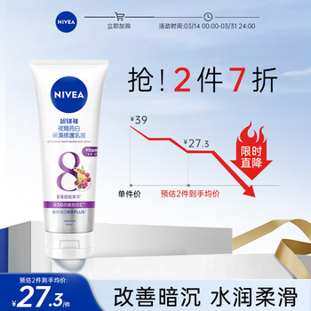 妮维雅(NIVEA)身体乳 夜美精华乳180ml 深层补水滋润 焕白肌肤
