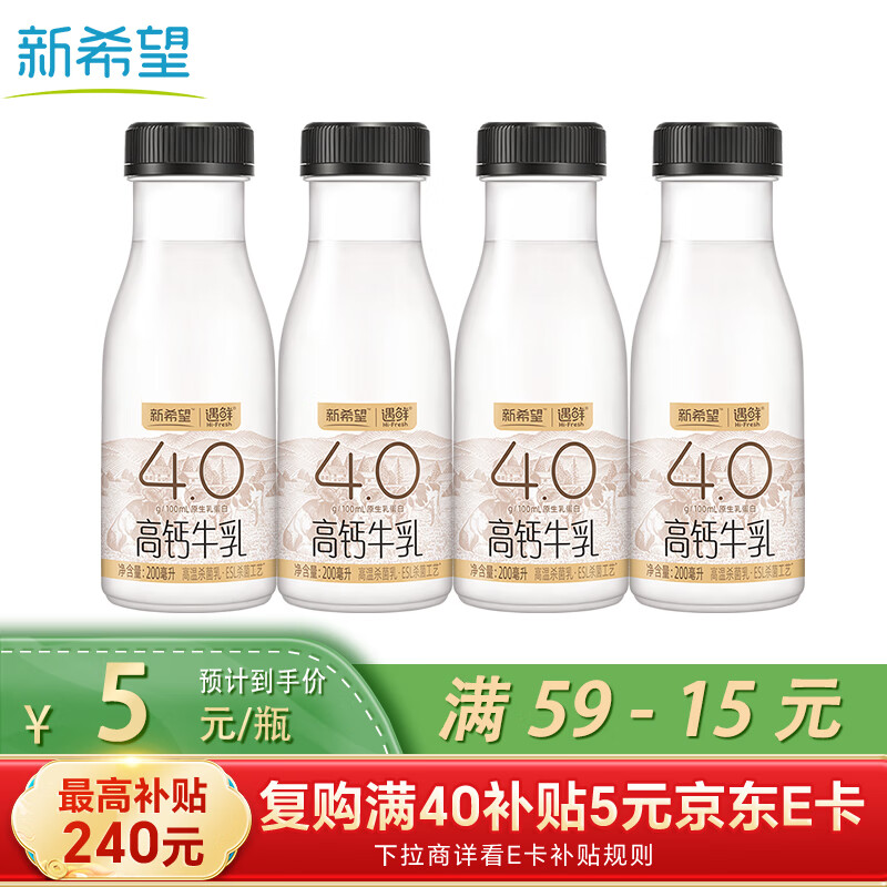新希望遇鲜4.0蛋白高钙牛奶200ml*4瓶 低温奶牛奶新鲜牛奶纯牛奶
