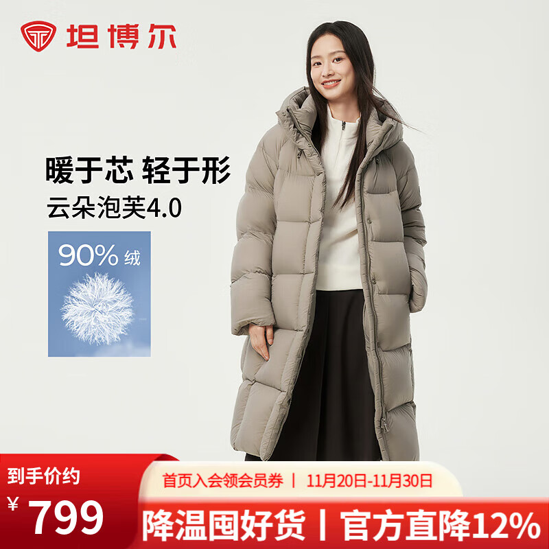 坦博尔2025新款防风加厚羽绒服女长款云朵泡芙休闲百搭连帽保暖530780D 松木棕 M