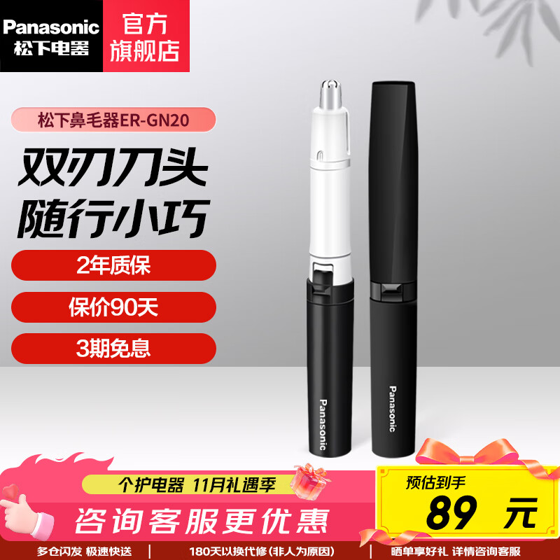 松下(Panasonic) 电动鼻毛修剪器 男士用刮剃修去鼻毛器剪刀女用自动干电池式修眉造型脱毛器七夕礼物送男友 ER-GN20-K 黑色