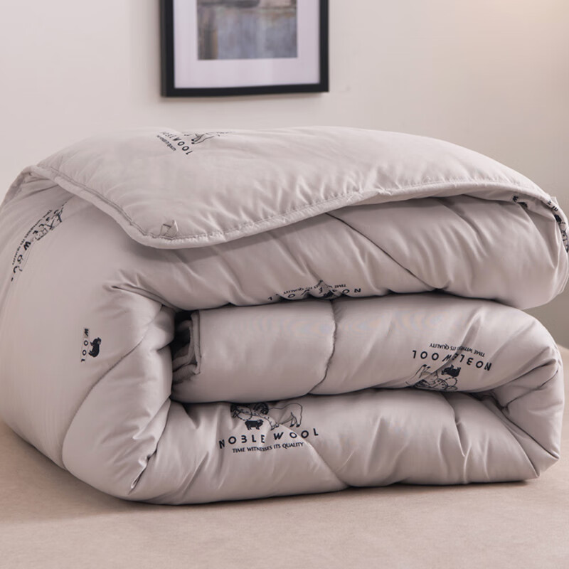 克努帛纯新澳洲纯羊毛被子 柔软面料保暖被芯 白羊毛填充春秋被冬被 QL纯羊毛被-灰色, 200X230cm【约6斤