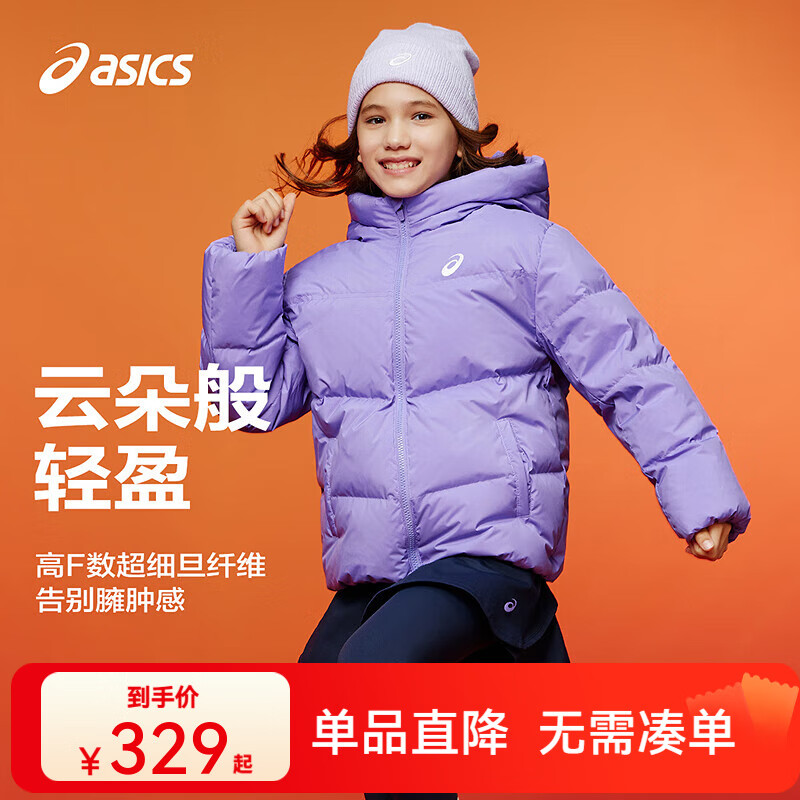 亚瑟士童装25年冬季中大童宽松短款泡芙羽绒服外套轻薄舒适 紫色 85%绒子 175 充绒187.5g