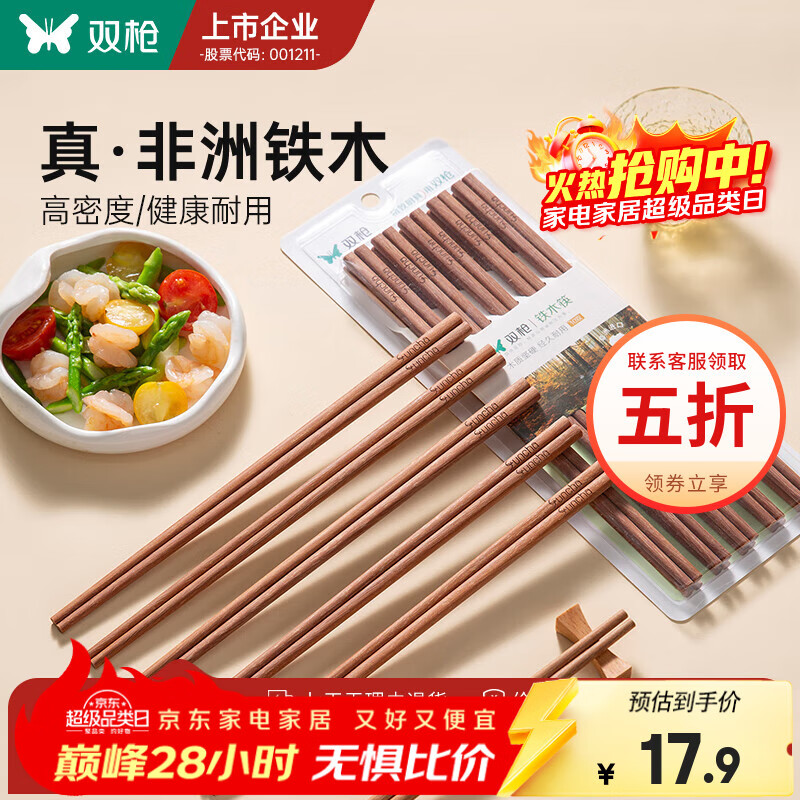 双枪铁木筷子家用2025新款高档抗菌防霉防滑木质快筷子油炸耐高温 【0漆0蜡】10双铁木筷/25cm