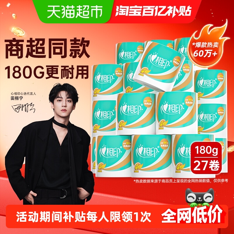 【下拉详情】【田栩宁推荐】心相印心柔卷筒纸4层180g27卷卫生纸