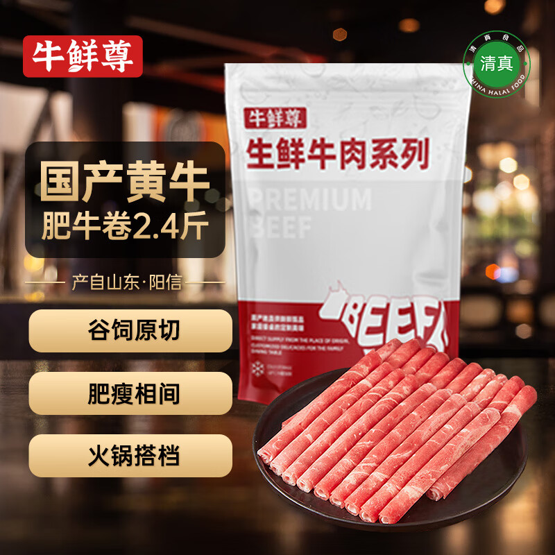 牛鲜尊国产黄牛 原切牛肉卷1.2kg(6包) 肥牛卷1号火锅食材 生鲜牛肉