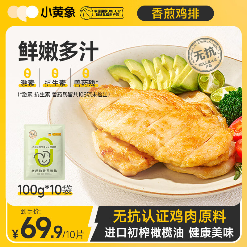 小黄象橄榄油香煎鸡排100g*10片鸡胸肉速食高蛋白早餐轻食鸡肉健身代餐
