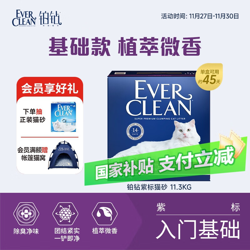 铂钻EverClean速凝抗菌低尘膨润土猫砂 (紫标)11.3kg/10L