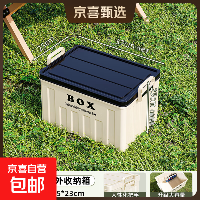 露营收纳箱车载储物箱汽车后备箱整理箱户外野营野餐大号置物箱子 【奶油蓝】 37*25*23cm 1个装