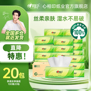 心相印抽纸整箱纸巾茶语100抽面巾纸卫生纸餐巾纸擦手纸 3层100抽20包