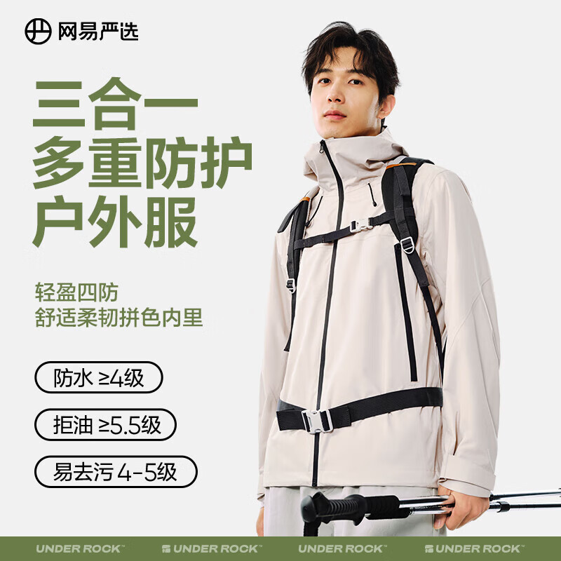 网易严选【断码特卖】三防户外服轻量软壳冲锋衣款防水防风 A款超轻三防户外服外套-白垩色 L