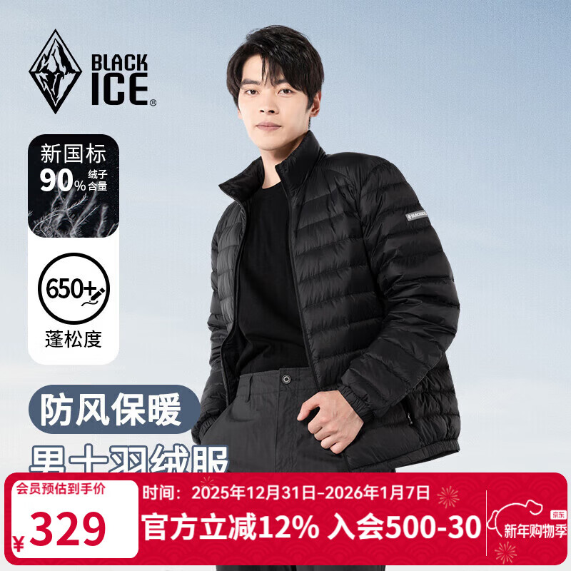 黑冰保暖轻量便携羽绒内胆男款立领休闲650蓬鸭绒羽绒服 FAF8901 哑黑 L