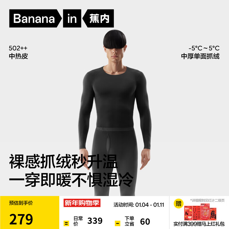 蕉内热皮502++男女士保暖内衣套装7A抗菌加厚秋衣秋裤秋冬季打底衫 【男】黑色 XL
