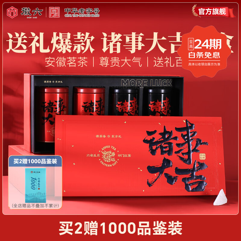 徽六绿茶六安瓜片祁门红茶礼盒装260g 2025新茶送礼年货节礼盒