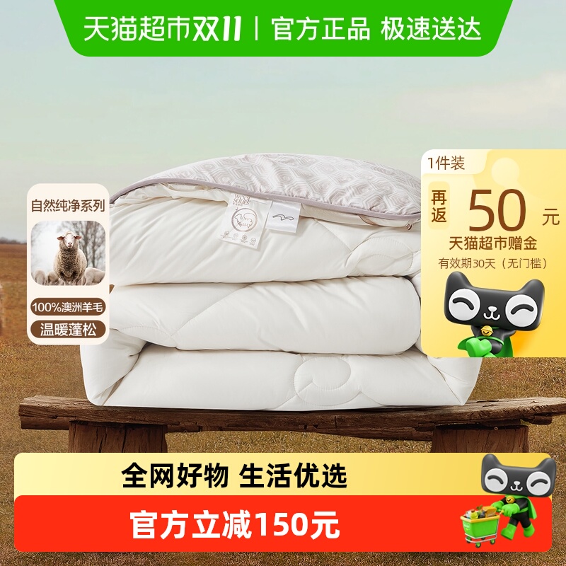 水星家纺进口抗菌羊毛被子冬被春秋被阳光卷毛学生宿舍秋冬被芯
