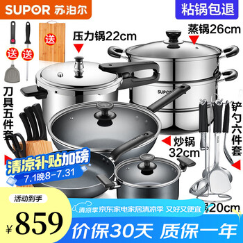 苏泊尔(SUPOR)不粘炒锅无烟厨房全锅具套装组合平底锅汤锅煎锅燃气电磁炉通用 七件套【炒+煎+汤+蒸+刀+铲+压】