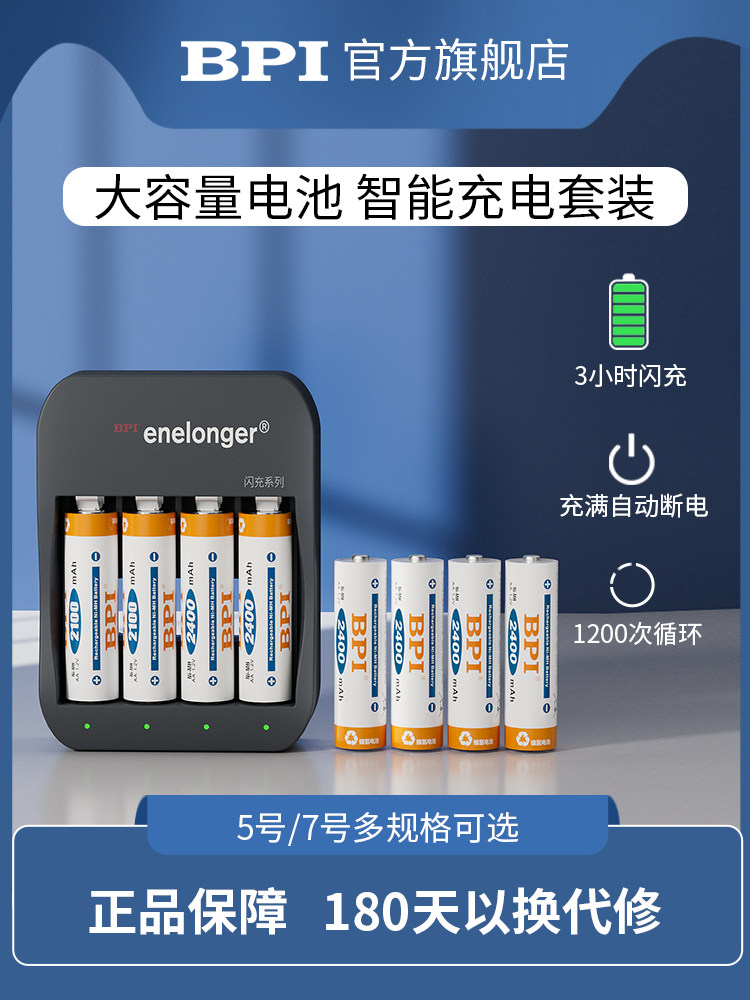 BPI倍特力5号7号可充电电池大容量套装KTV麦克风话筒闪光灯相机智能门锁铃玩具车剃须刀专用五七号镍氢电池AA