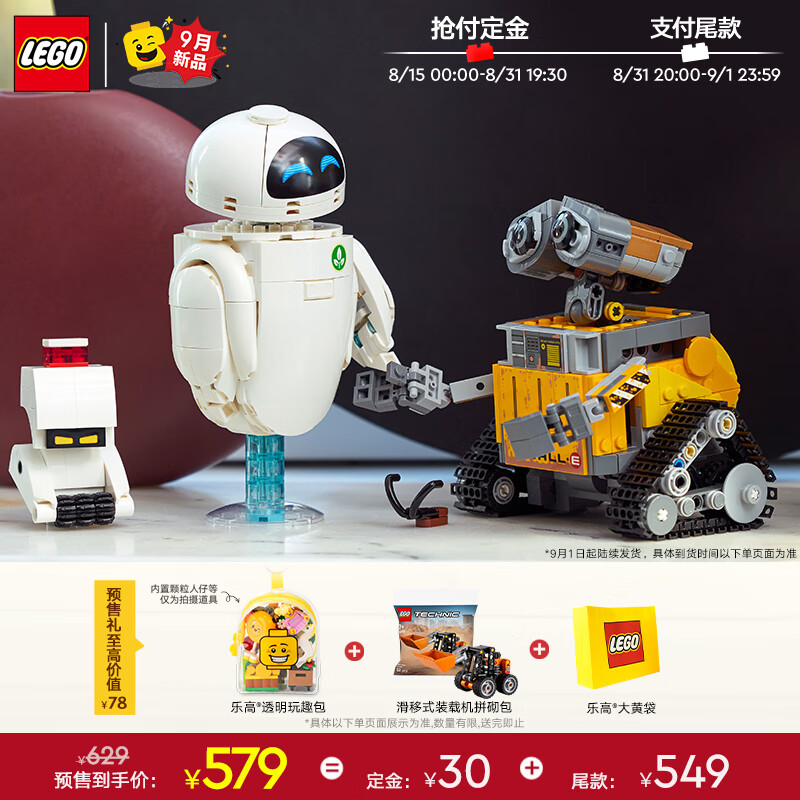 乐高(LEGO)积木迪士尼43279 瓦力与伊娃机器人男孩女孩玩具七夕情人节礼物