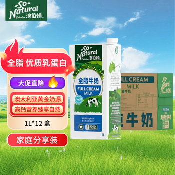 澳伯顿So Natural 全脂纯牛奶1L*12盒整箱 澳大利亚原装进口 年货送礼