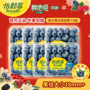 怡颗莓【莓好时光】当季云南蓝莓 国产蓝莓 新鲜水果生鲜 云南蓝莓超大果 125g*8盒