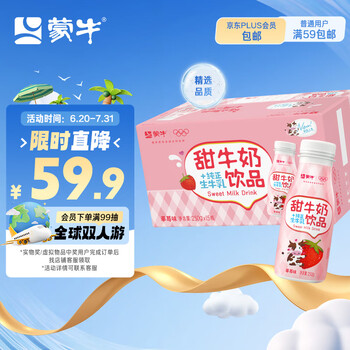 蒙牛甜牛奶饮品草莓味配制型含乳饮料PET瓶250g×15瓶