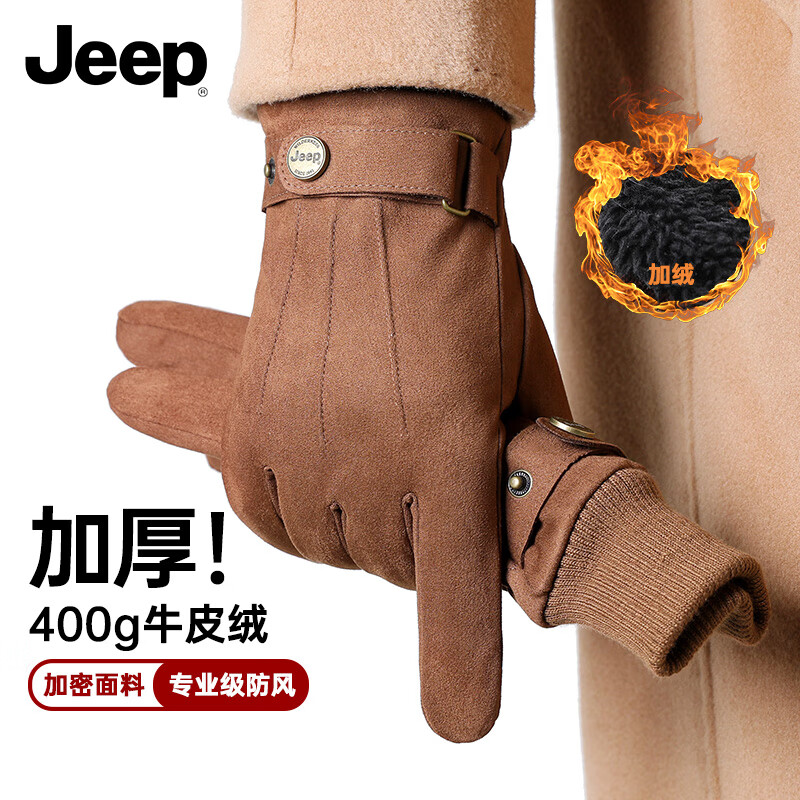 吉普(JEEP)骑行棉手套男冬季加绒加厚触屏骑行电动摩托车防寒保暖