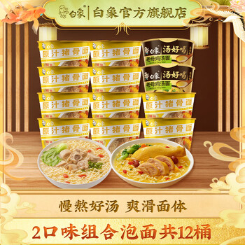 白象汤好喝精炖方便面红烧原汁组合装泡面桶面整箱汤面 原汁猪骨面10桶+老母鸡汤面2桶